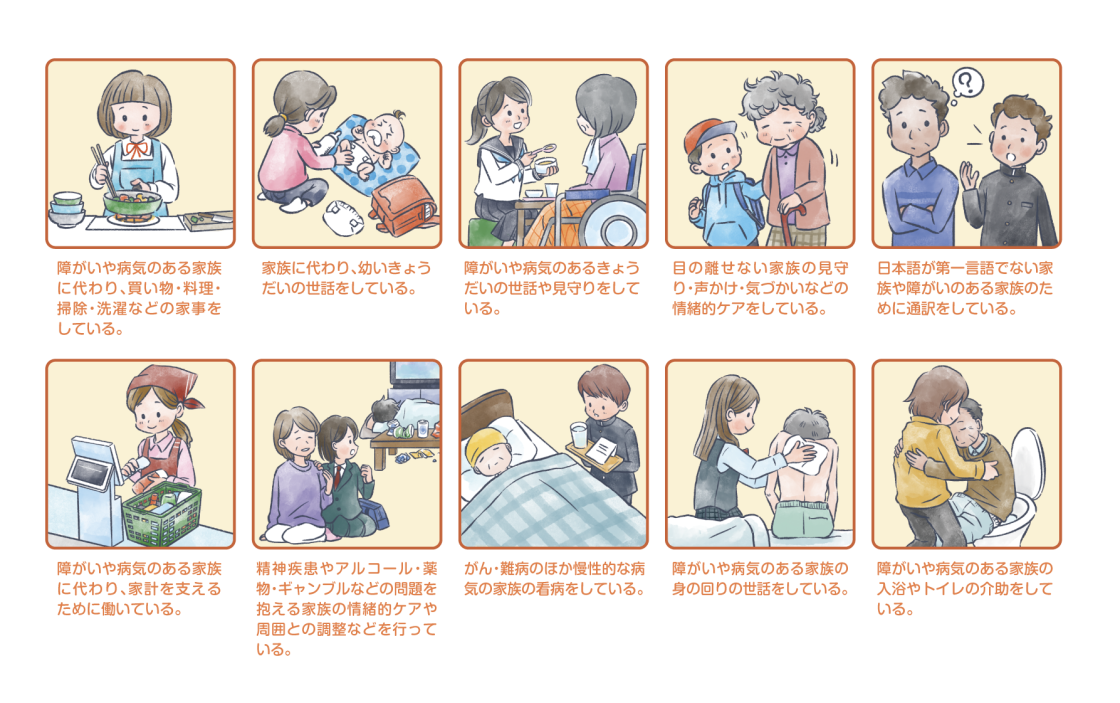 “本来大人が担うと想定されている家事や家族の世話などを日常的に行っているこども・若者”のこと。